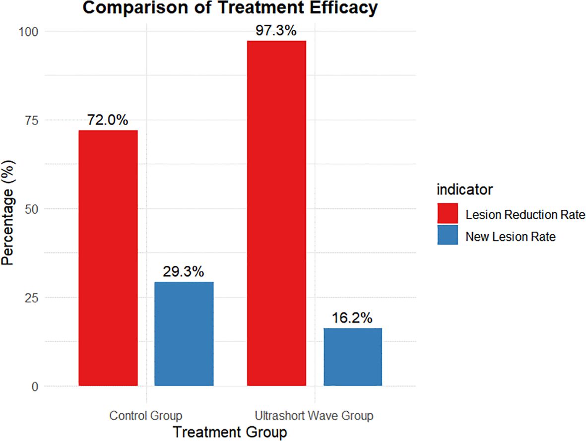 A summary of the main treatment outcomes comparing the control group and ultrashort wave therapy group is presented in Table 5.