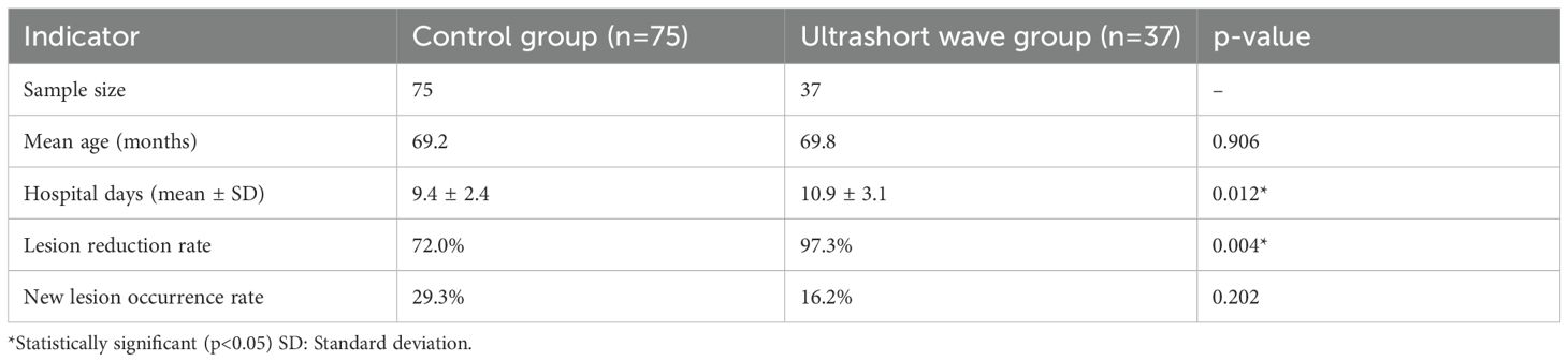 Table 1. Comparison of baseline characteristics between the control group and the ultrashort wave therapy group.