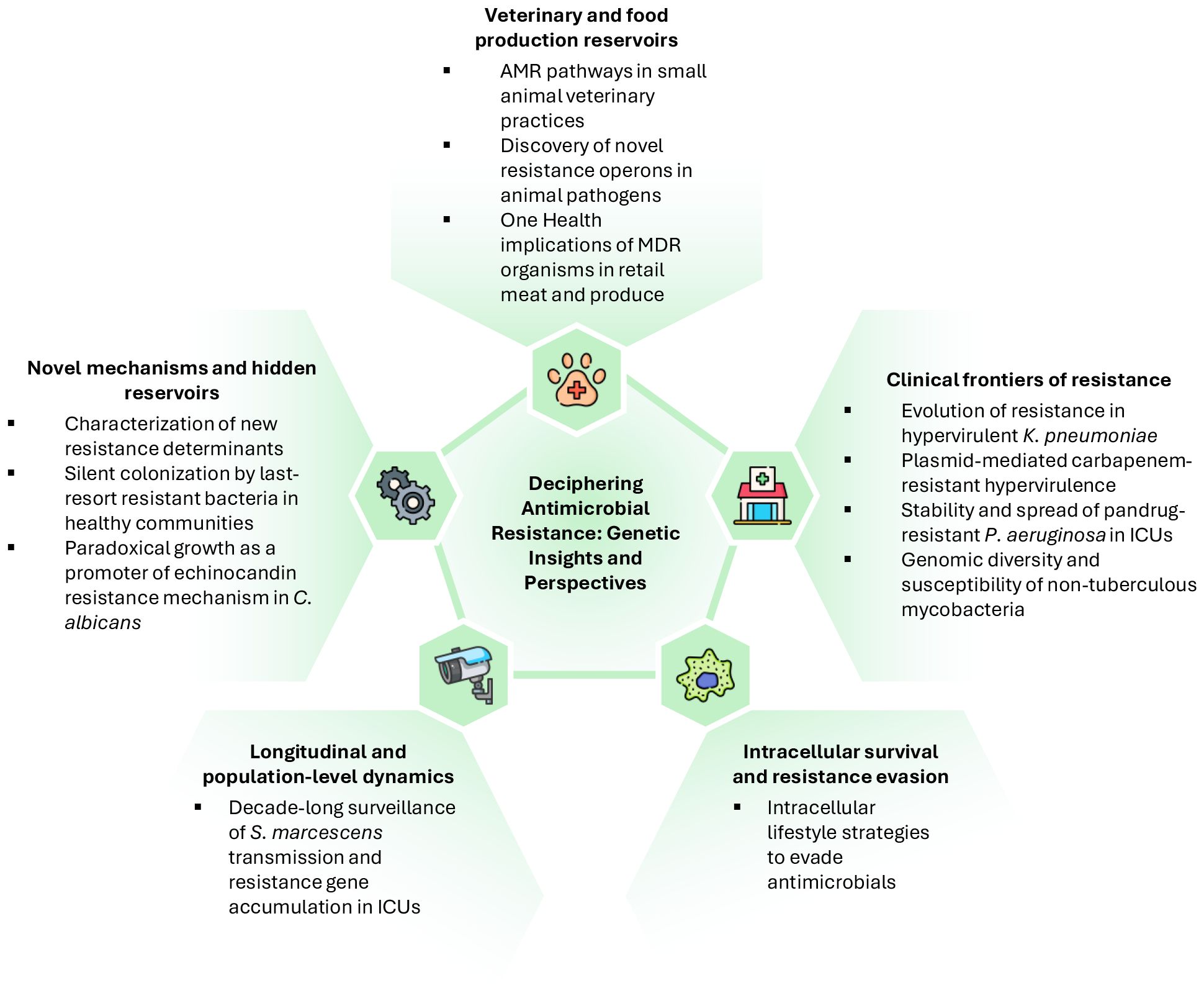 Antimicrobial agents have propelled medicine into the era of modern healthcare. However, the efficacy of antimicrobial therapies is progressively weakening as antimicrobial resistance (AMR) escalates, representing a profound threat to global health that transcends human, veterinary, and environmental boundaries. The development of AMR arises from multiple drivers, including i) antimicrobial overuse and misuse, ii) insufficient diagnostic practices, and iii) the intrinsic adaptability of microbial genomes. As AMR continues to spread, our ability to combat common infections and undertake routine medical interventions safely is increasingly compromised (Antimicrobial Resistance Collaborators, 2022). Addressing this challenge requires comprehensive research into the genetic basis of resistance mechanisms, surveillance of microbial communities across multiple reservoirs, and the development of novel strategies to counteract AMR (Jauneikaite et al., 2023).