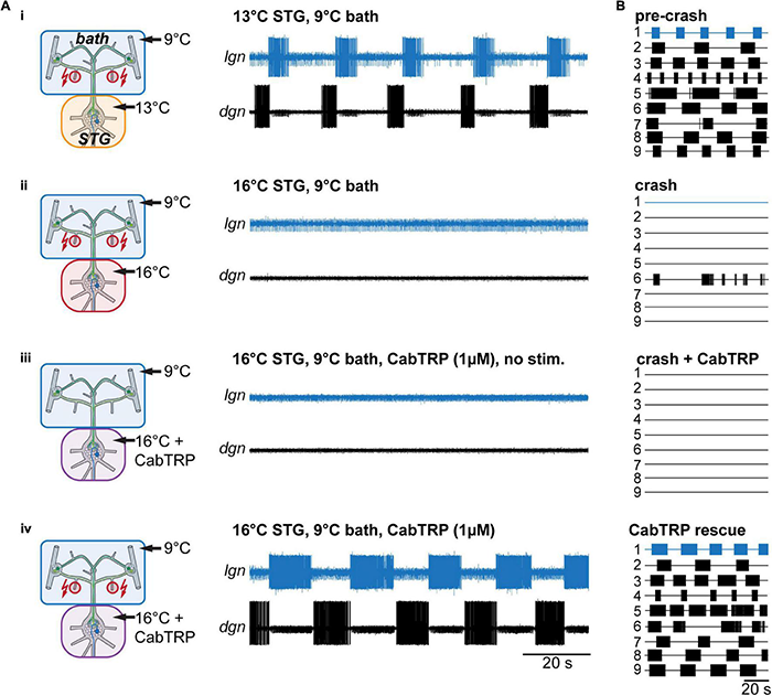 Acute temperature changes are a significant challenge to neurons and neuronal circuits because they alter active and passive biophysical membrane properties but rarely linearly or equally across properties (Hille, 1978; Collins and Rojas, 1982; Cao and Oertel, 2005). Consequently, temperature changes can disrupt neuronal activity with severe consequences for behavior and survival. All levels of neuronal processing are affected by temperature changes, including active and passive properties, dendritic and somatic integration, and synaptic release and neuronal coupling. Possessing compensatory mechanisms that protect neurons from detrimental temperature changes are thus vital components of survival. Such compensatory mechanisms are particularly relevant for poikilothermic animals, which can experience significant environmental temperature fluctuations on different time scales (from rapid and intermittent changes to slow and permanent ones).