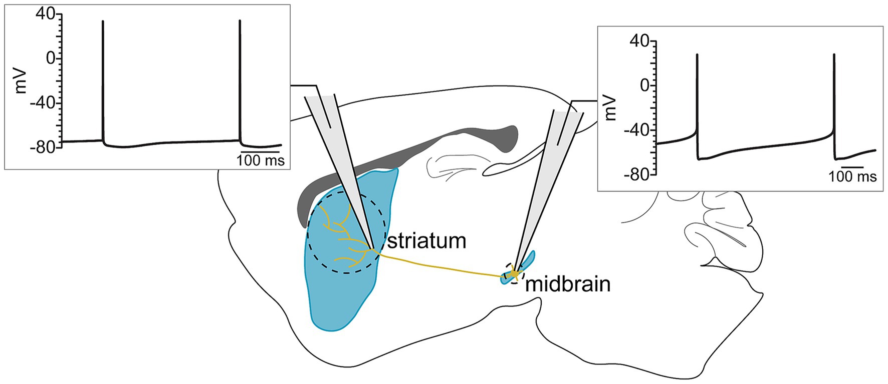 Axons are often conceptualized as a relatively simple component of the neuron. According to the canonical view, the purpose of an axon is to propagate action potentials (Hodgkin and Huxley, 1952). However, this understanding began to evolve through studies on circuits in Cancer borealis when researchers found that focal applications of transmitter to peripheral axons could evoke action potentials along almost the entire axon (Goaillard et al., 2004; Bucher et al., 2003; Meyrand et al., 1992). In the past three decades, more dynamic processes have been discovered in axons including inhibition, gating of branch point propagation, analog modulation, and synaptic-like excitation. Here we will focus on dopaminergic neurons of the basal ganglia, where axonal signaling and local modulation have been found to be critical controllers of neurotransmitter release and network activity (Kramer et al., 2022; Rice and Cragg, 2004).