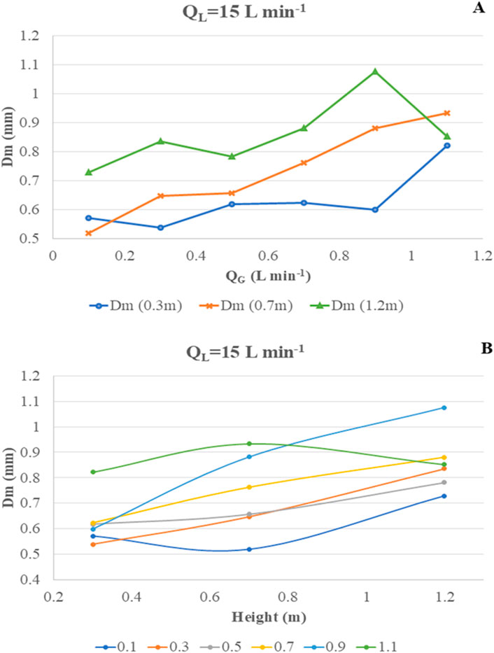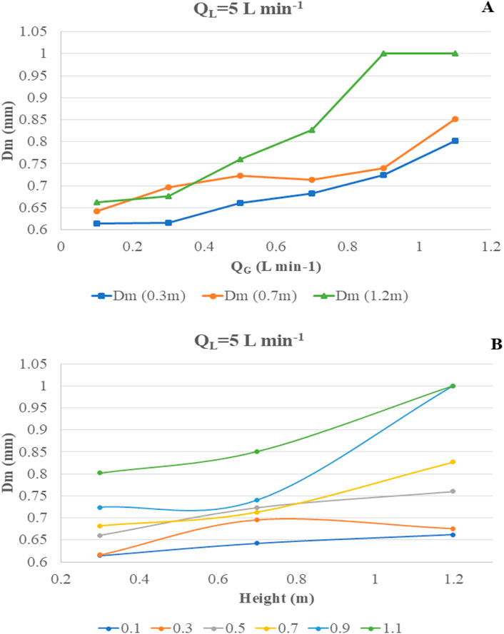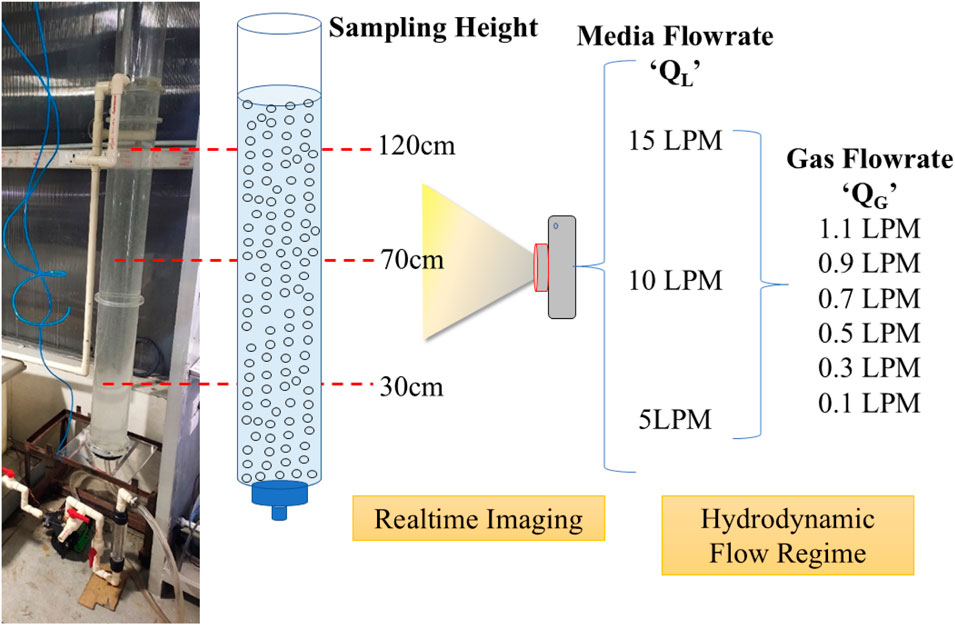 In line with our previous Venturi injector design (Dey et al., 2020), the throat ratio is maintained at 0.5. QL is the volumetric flow rate of liquid, QG is the volumetric flow rate of gas, and ρl and ρg are the density of liquid and gas, respectively.