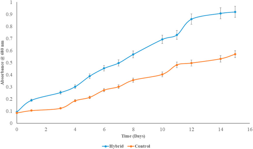 The CO2 bio-fixation rate (RCO2) was estimated using the equation given by Ding et al. (2020) and expressed in mgL−1d−1: