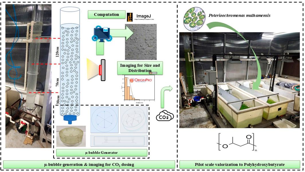 Keywords: microbubble photobioreactor, CO2 bio-fixation, polyhydroxybutyrate, algal biopolymer, carbon capture and usage