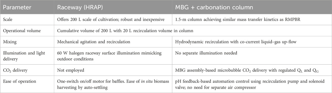 Thus, microbubble injection enhances CO2 dissolution and uptake by increasing the gas–liquid interfacial area and reducing bubble rise velocity, thereby improving mass transfer efficiency at low energy input (You et al., 2024). However, very few studies have demonstrated the pilot-scale implementation of Venturi-based continuous CO2 delivery in large-scale microalgal systems (Du et al., 2012; Huang et al., 2020).