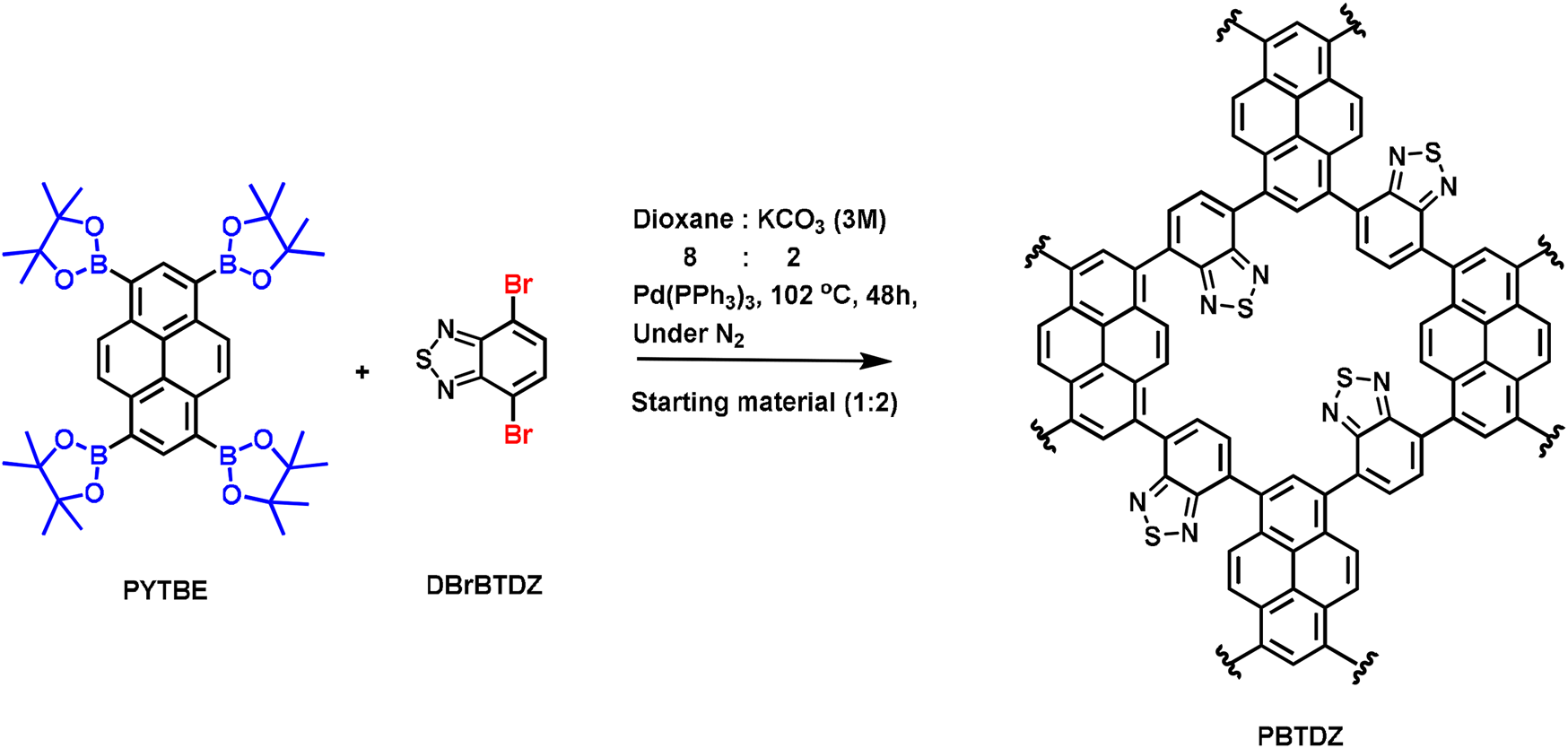 Synthesis of PBTDZ via Suzuki C-C cross-coupling reaction.