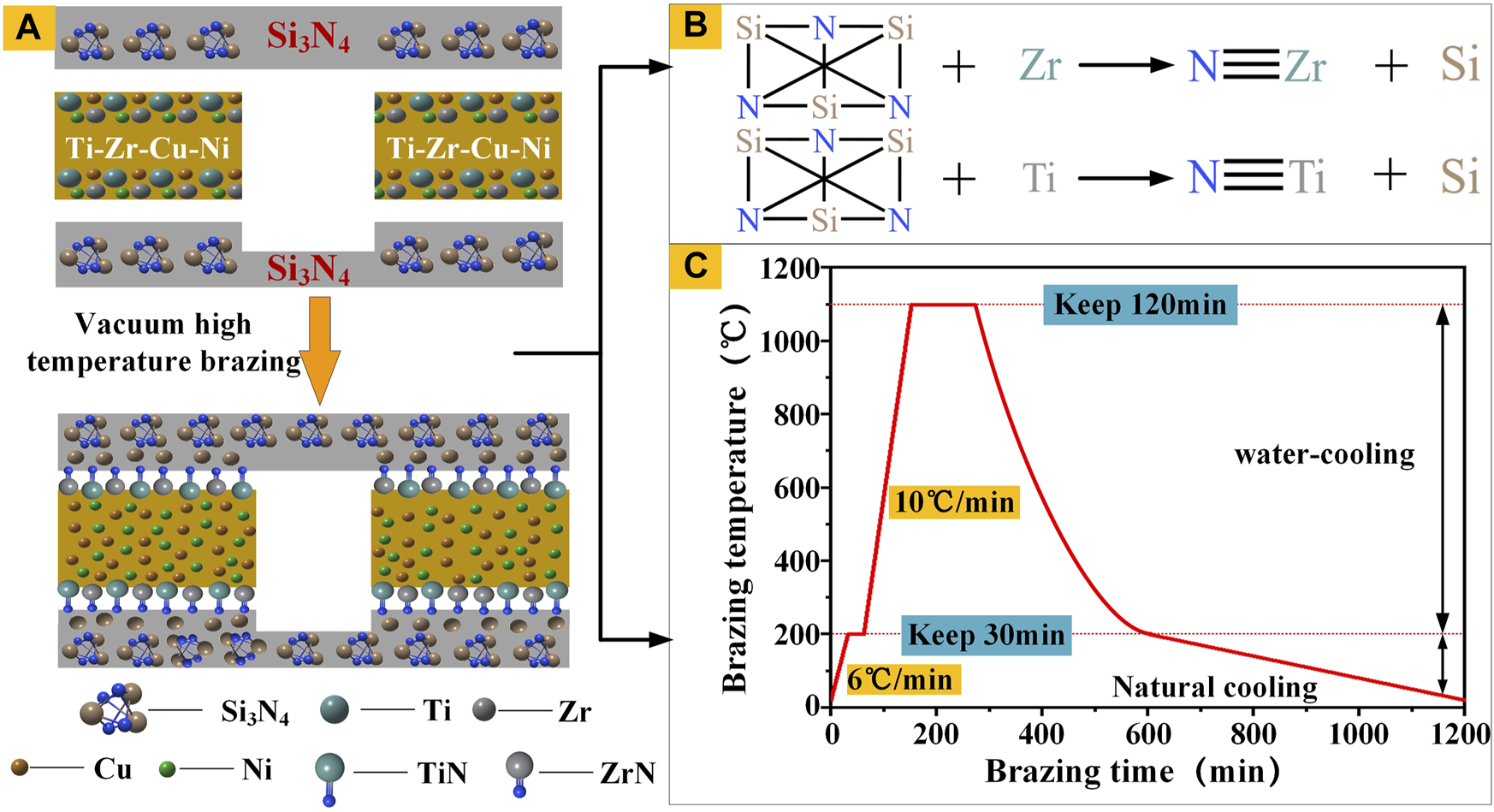 After brazing, the temperature was reduced to 200°C at a rate slightly lower than the heating rate, and then cooled in the furnace. Figure 4C shows the complete heating process curve. After cooling the vacuum furnace to room temperature, the Si3N4 ceramic samples were removed.