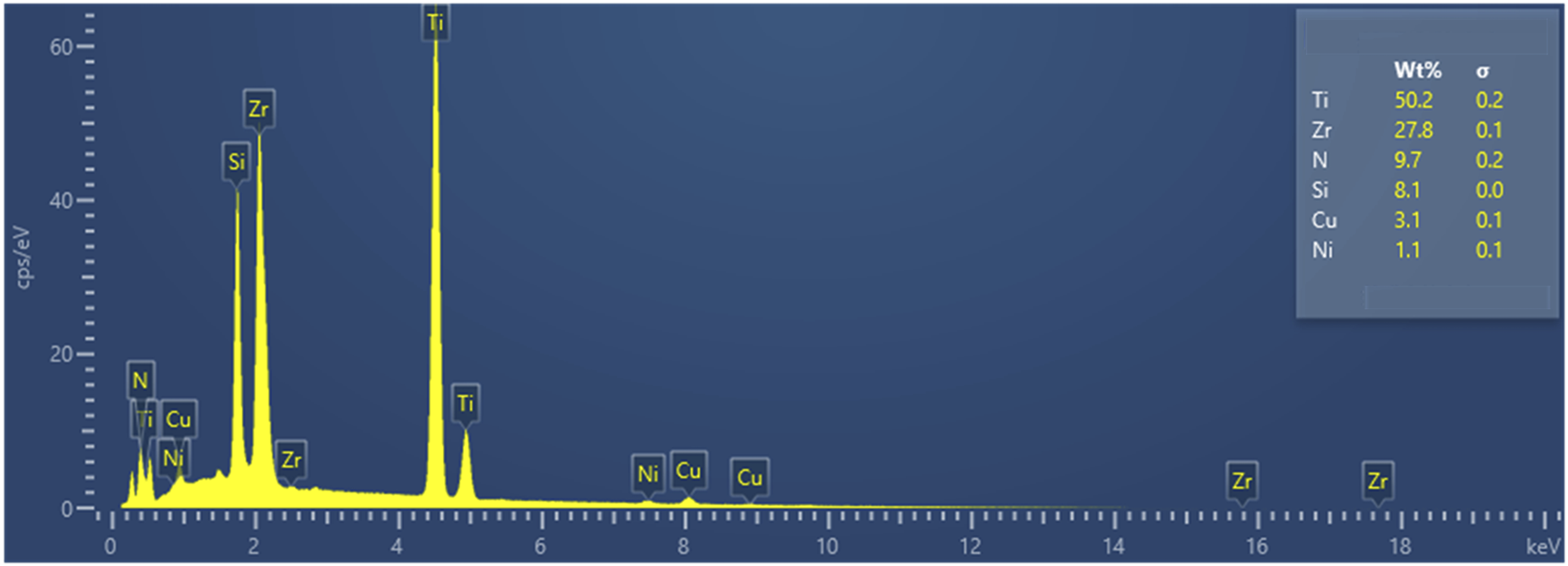 The Energy Dispersive Spectrometer (EDS) analysis results of the brazed interface.