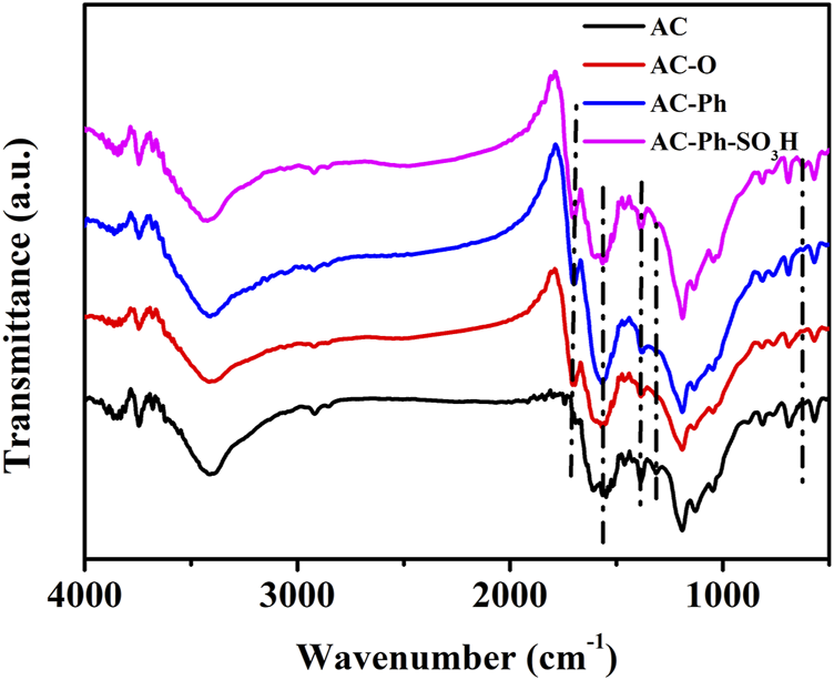 FT-IR spectrum of AC AC-O AC-Ph and AC-Ph-SO3H.