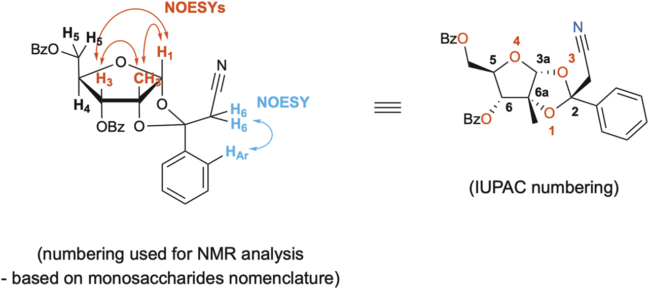 (6-(Benzoyloxy)-2-(cyanomethyl)-6a-methyl-2-phenyltetrahydrofuro[2,3-d][1,3]dioxol-5-yl)methyl benzoate (10).