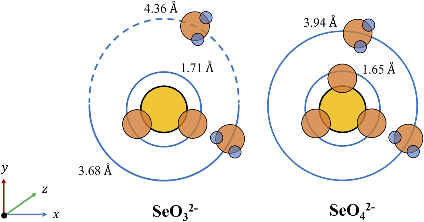 2D visualization of molecular structures and hydrated radii of a selenate and selenite anion in an aqueous solution adapted from Eklund and Persson (2014).