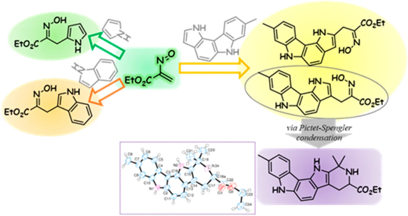 nitrosoalkenes, pyrrolo[3,2-c]carbazole, hetero-Diels-Alder reactions, pictet-spengler reaction, DFT calculations