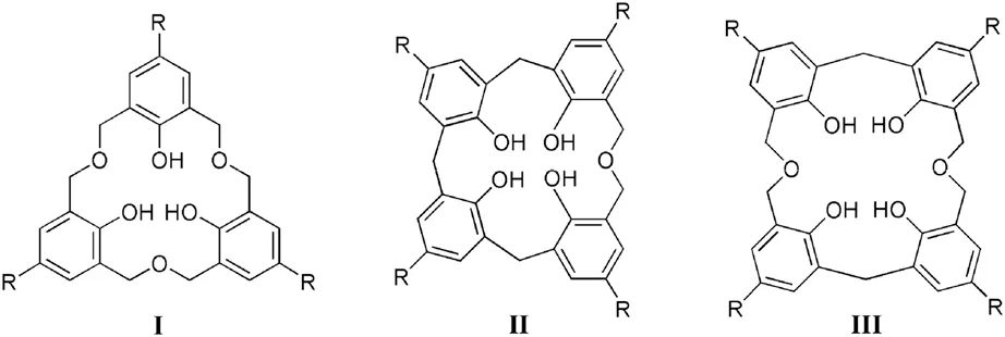 Variations can be introduced into the calixarene skeleton. This is made possible by adding heteroatoms between the methylene bridges or replacing them entirely, to give the heteracalixarene class. Homooxacalixarenes, in particular, are calixarene analogues in which the CH2 bridges are partly or completely replaced by CH2OCH2 groups (Marcos, 2016). The incorporation of oxygen atoms and the higher conformational mobility brought by the dimethyleneoxa bridge modify the host-guest properties of these compounds (as compared to their all-carbon analogues), providing suitable binding sites for various species. Owing to this structural versatility, homooxacalixarenes have been used as receptors for different types of guests. For example, the C3 symmetry of the hexahomotrioxacalix[3]arenes (I), often encountered in nature but relatively rare in synthetic host molecules, makes them useful binders for guests with complementary binding requirements, as ammonium cations, species present in compounds of biological interest (Cottet et al., 2012).