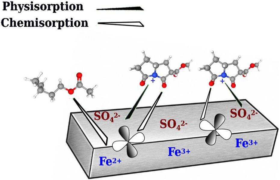 One of the most used materials in the metallurgic, chemical, and oil industries is mild steel, which can show different types of corrosion depending on the conditions and corrosive media (About et al., 2021). This is a serious problem for the industry as it represents high economic loss and, on occasion, accidents that involve the loss of human life (Mourya et al., 2014; Popoola, 2019). In the oil industry, the high solubility of corrosive gases, such as H2S, CO2, and O2, in the aqueous phase of hydrocarbons contributes to the intensification of the corrosion (Vasquez Medrano et al., 2003). The interaction between O2 and H2S promotes the formation of elemental sulfur, whose dissolution in water may lead to FeS, Fe2O3, FeOOH, and S. Likewise, the presence of O2 and SO2 may result in the formation of sulfuric acid, which increases the corrosiveness of water and induces the formation of FeSO4,·4H2O, FeOOH, and FeSO3xH2 scales (Hua et al., 2015; Sun et al., 2016; Likhanova et al., 2018).