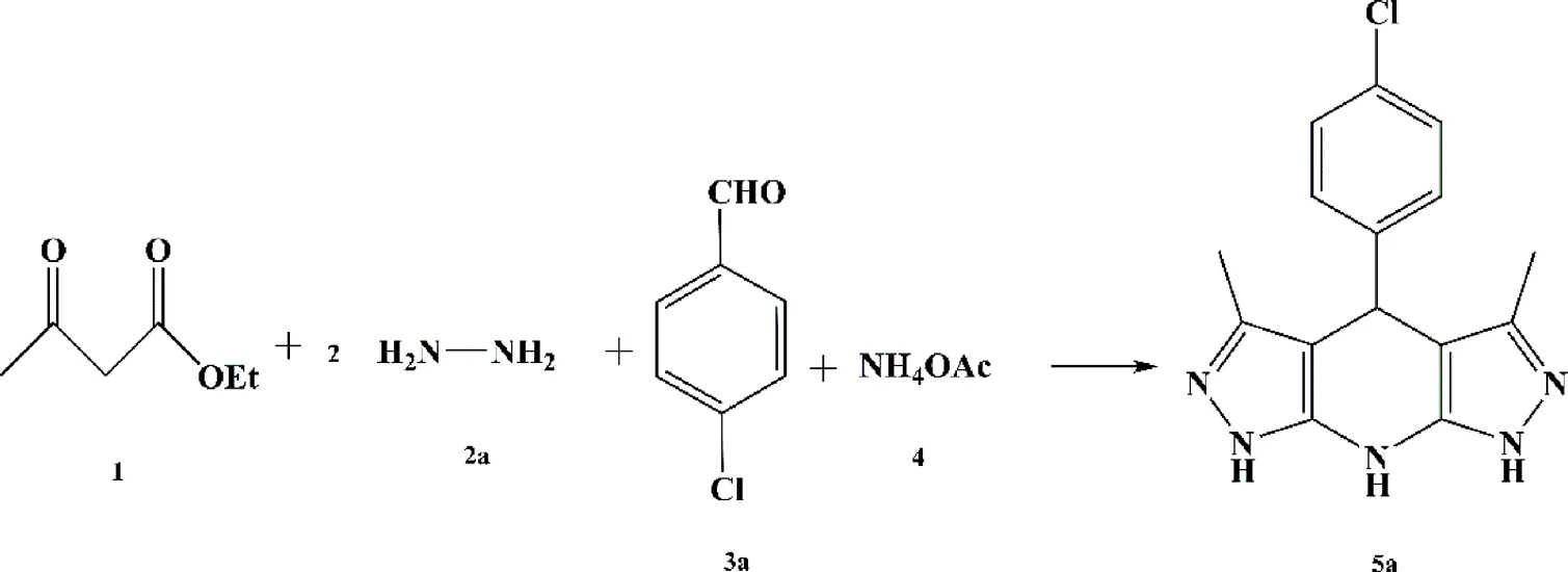 At the outset, the focus was on obtaining the optimal reaction conditions. Six-component reactions, comprising a double ratio of hydrazine derivative and ethyl 3-oxobutanoate to 4-chlorobenzaldehyde and ammonium acetate, were chosen, as well as a four-component process including ethyl 3-oxobutanoate, hydrazine, barbituric acid, and 4-chlorobenzaldehyde, as model reactions. Various parameters such as temperature, catalysts, and solvents were investigated in both multicomponent reactions aimed at synthesizing pyrazole derivatives (refer to Tables 2, 3).