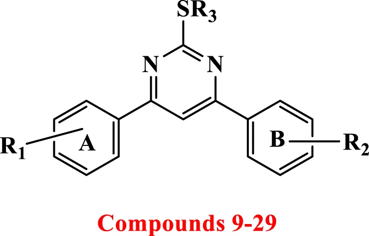 Design of antiproliferative pyrimidine-based derivatives 9–29.