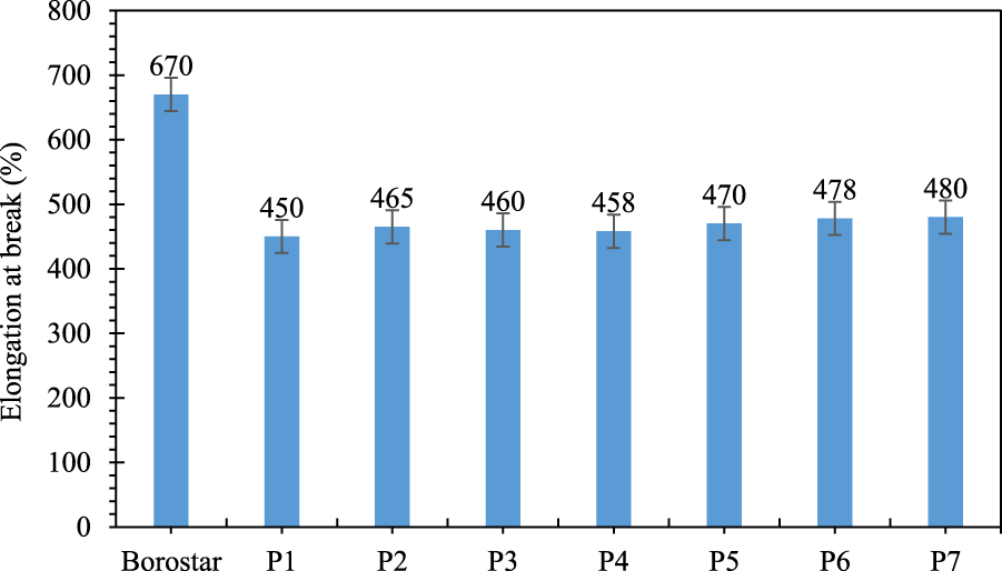 | Elongation at break (rate of extension: 70 mm/min) | 200%–300% |