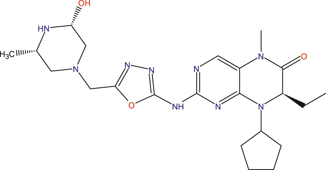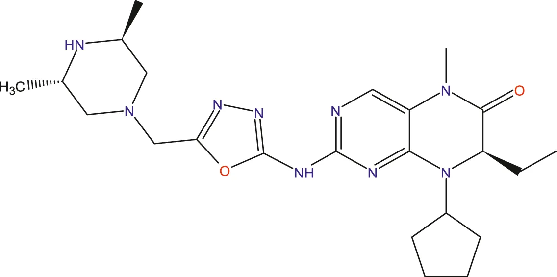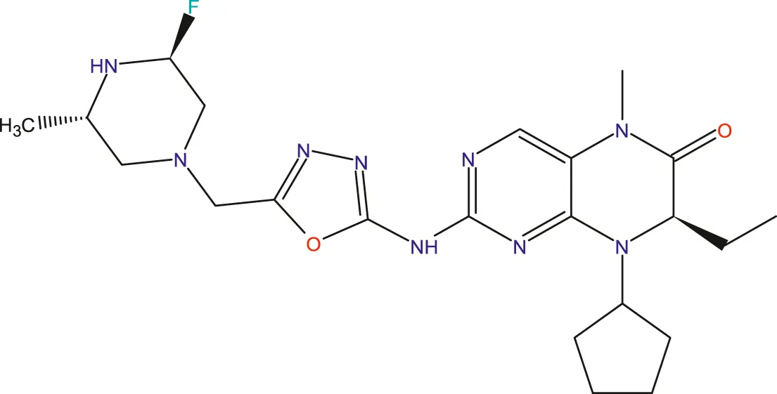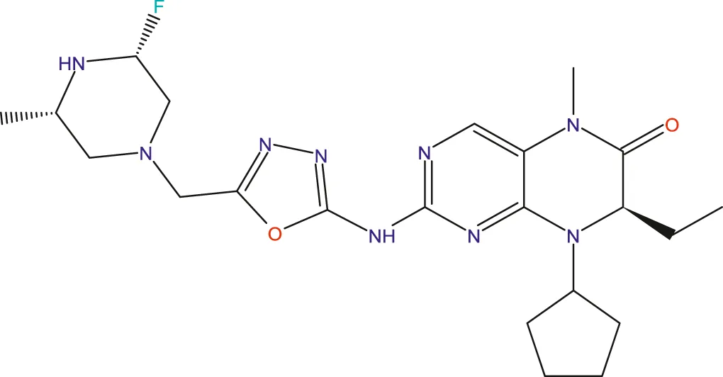 Experimental data on 33 novel dihydropteridone compounds with an oxadiazole moiety that are effective MCF-7 inhibitors are shown in the following table (Table 1).