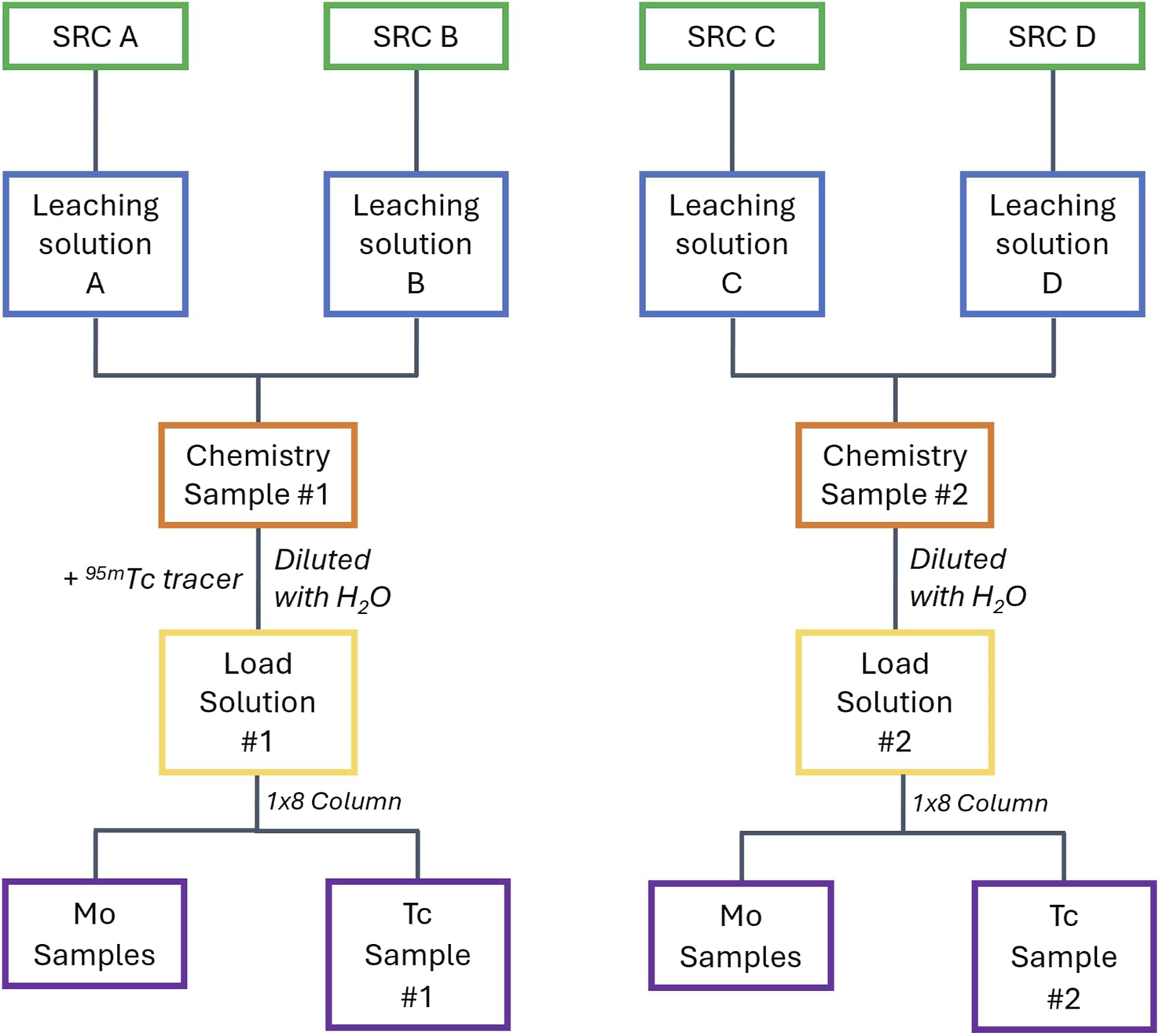Chemical processing flow chart for four SRCs. This can be extrapolated to more SRCs in sets of two.