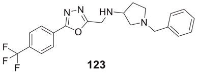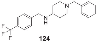 Donepezil is a primary drug used for the treatment of Alzheimer’s disease. Gupta et al. designed the analogues of donepezil based on the SAR of lead compound indanone moiety. The novel synthesized compounds indicated good in-vivo and in-vitro inhibition of cholinesterase. 3-(4-(4-Fluorobenzoyl)piperidin-1-yl)-1-(4-methoxybenzyl)pyrrolidin-2-one (54) and 1-(3,4-dimethoxybenzyl)-3-((1-(2-(trifluoromethyl)benzyl)piperidin-4-yl)methyl)imidazolidin-2-one (55) exhibited the most potent AChE inhibitory activity from this series with 0.018 ± 0.001 and 0.022 ± 0.002 µMol of AChE/min/mg of protein, respectively (Gupta et al., 2020).