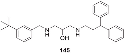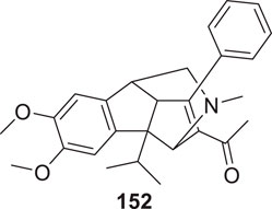 Huperzine A is a natural product having anti-cholinesterase activity, like galantamine. It has been obtained from Huperzia serrata as a sesquiterpene alkaloid. It is used in China as a standard therapy for dementia. Miao et al. modified huperzine and synthesized a new series of N-hetero (aryl) analogues of huperzine A. Further, they evaluated this analog for its anti-Alzheimer’s activity. From this synthesized series, (5R,7S,9S,E)-11-ethylidene-5-((5-methoxy pyridin-2-yl)amino)-7-methyl-5,6,7,8,9,10-hexahydro-5,9-methanocycloocta [b]pyridin-2(1H) -one (63) with 5-methoxy-2-pyridyl substitution displays potent AChE inhibition with IC50 value of 1.5 µM, which is 7.6 times more potent than huperzine A. It also indicated anti-oxidant activity. A molecular docking study speculates that compound 63 has good binding interaction. Aromatic moiety interacts via π-π stacking; methoxy pyridine shows hydrophobic interaction. This analog exhibited neuroprotective properties (Miao et al., 2021).