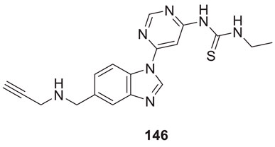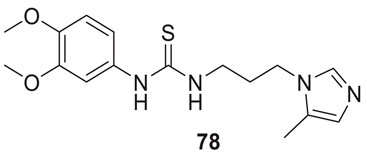 Xiaokang et al. designed, synthesized, and evaluated non-fused pyrimidinyl thiourea derivatives by screening hit compounds and modifications. These are multifunctional agents. 1-(6-(4-((dipropylamino)methyl)-1H-imidazol-1-yl)pyrimidin-4-yl)-3-ethyl thiourea (44) and 1-ethyl-3-(6-(4-(pyrrolidin-1-ylmethyl)-1H-imidazol-1-yl)pyrimidin-4-yl) thiourea (45) show good inhibition and binding selectivity for AChE. Compound 44 (IC50 = 0.204 μM) and compound 45 (IC50 = 0.067 μM) have been found to exhibit notable AChE inhibition. These compounds demonstrated multiple activities such as specific metal-chelating ability, anti-oxidant effects, and modulation of metal-induced Aβ aggregation (Li X. et al., 2016).