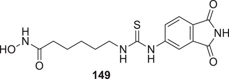 Suwanhom et al. similarly studied carboxamide derivatives and designed chromon-2-carboxamido alkylamines. 7-Methoxy-4-oxo-N-(3-(piperidin-1-yl)propyl)-4H-chromene-2-carboxamide (12) displayed a potent AChE inhibitory activity (IC50 = 0.09 ± 0.02 μM) than tacrine (IC50 = 0.13 ± 0.02 μM). The enzyme kinetics revealed that compound 12 is an uncompetitive inhibitor, and the docking study speculated the compound as a dual-binding inhibitor. Also, the cytotoxic effect was less, and the neuroprotective effect was more (Suwanhom et al., 2020).
