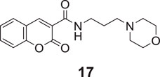 Tehrani et al. developed coumarin-3-carboxamide-N-morpholine hybrids as cholinesterase inhibitors. Among these compounds, propyl morpholine derivative N-(3-morpholinopropyl)-2-oxo-2H-chromene-3-carboxamide (17) with unsubstituted coumarin moiety depicted the highest AChE inhibitory activity (IC50 = 6.21 ± 0.03 μM). Docking and kinetic studies revealed the dual binding ability of compound 17 (Tehrani et al., 2019).