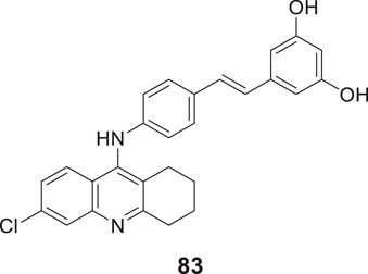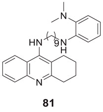 Camps et al. designed, synthesized, and evaluated a series of dual-binding site AChE inhibitors. N-(8-((6-chloro-1,2,3,4-tetrahydroacridin-9-yl)amino)octyl)-3-(5-phenyl-3,4-dihydro-2H-pyrano [3,2-c]quinolin-9-yl)propenamide (4) demonstrates potent activity towards inhibition of AChE (IC50 = 14 ± 1.2 nM). The newly discovered compounds comprise chlorotacrine connected to a pyrano [3,2-c]-quinoline structure through an oligomethylene linker and an amido group. They exhibited a dual binding effect, binding to the active site through tacrine and to a peripheral site through the pyrano [3,2-c]-quinoline moiety. Compound 4 crosses the blood-brain barrier and shows in-vitro inhibition of Aβ aggregation (Camps et al., 2009).