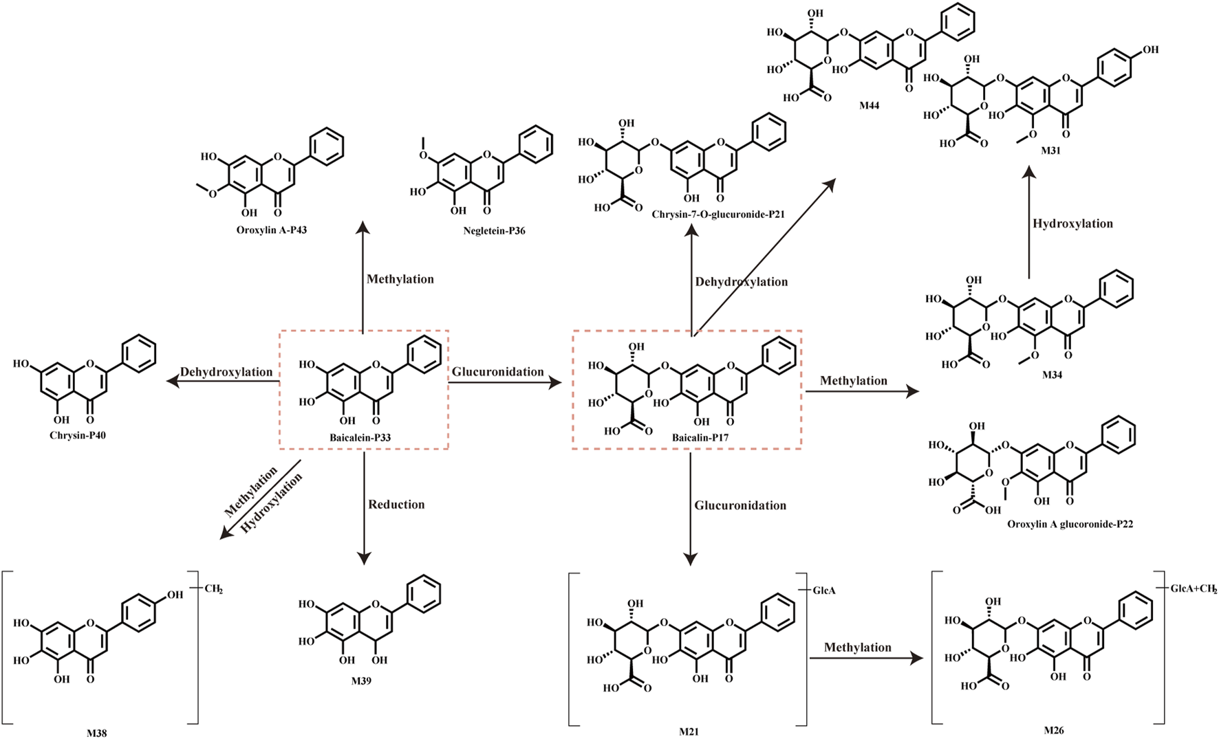 Wang Y. Yang J. Fau - Li X. Li X Fau - Wang J. Wang J. (2012). The metabolism of baicalin in rat and the biological activities of the metabolites. Evidence-Based Complementary Altern. Med.2012, 1741–1746. 10.1155/2012/404529