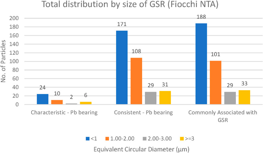 Figure 14. Total distribution of GSR particles size collected from both hands of Fiocchi NTA (n = 5 shots).