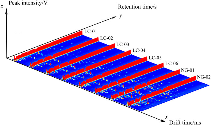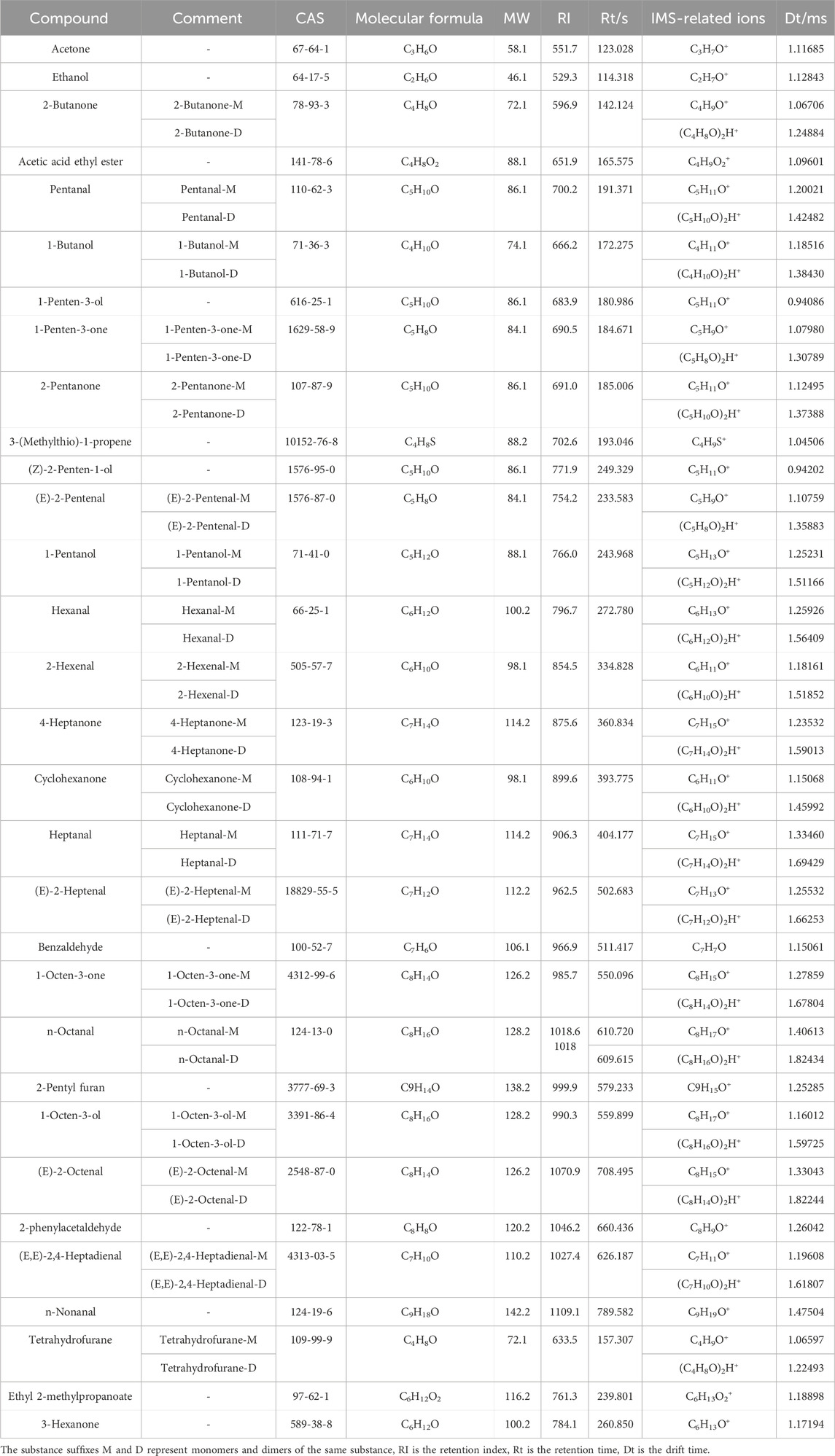 IMS conditions: the IMS reagent was 3H (tritium), a 53 mm drift tube was used, the electric field intensity was 500 V cm−1, the drift tube temperature was 45 °C, the flow rate of the carrier gas (high-purity N2) was 75 mL min−1, and the positive ion mode was used.