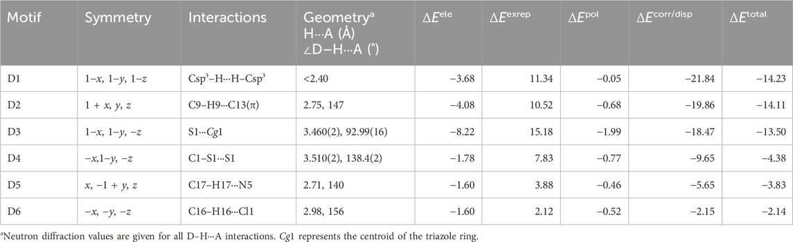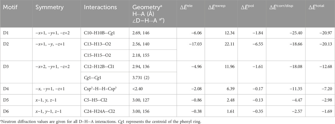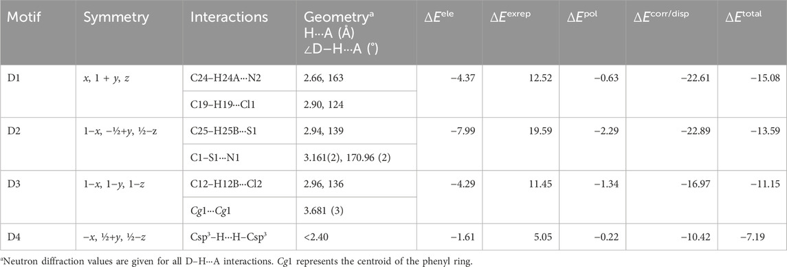 Table 3. Intermolecular interactions observed in various dimers of compound D, with decomposed energy components expressed in kcal mol−1.
