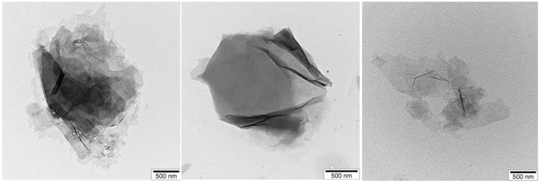 The morphology and elemental composition of the samples were analyzed using SEM, TEM, and EDS techniques. The TEM results of pure GO are presented in Figure 7.