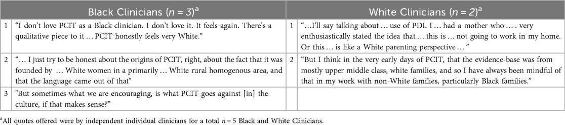 3.2 Divergent PCIT clinical training themes from Black and White clinicians
