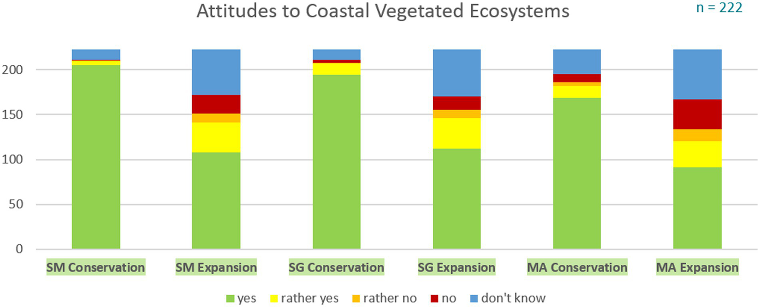 Attitudes to CVEs. SM, salt marsh; SG, seagrass; MA, macroalgae.