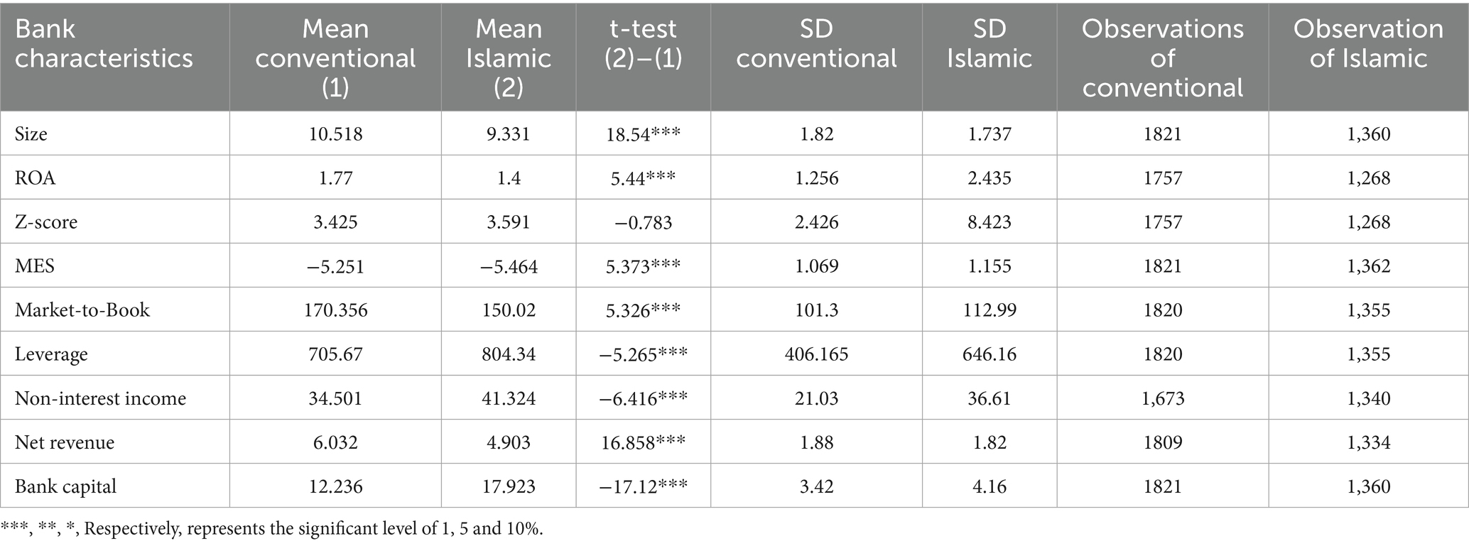 Consistent with Abedifar et al. (2013), we fail to document a significant difference in the Z-score between the two banking models. Prior studies, such as those by Beck et al. (2013), Abedifar et al. (2013), and Alqahtani et al. (2016), suggest that Islamic banking is better capitalized. Nevertheless, Abedifar et al. (2013) explain that the higher returns and capital of Islamic banks are undermined by their higher asset return volatility. For other idiosyncratic bank characteristics, conventional banking outperforms its Islamic counterparts in marginal expected shortfall (MES) and net revenues, whereas Islamic banking achieves superior non-interest income.