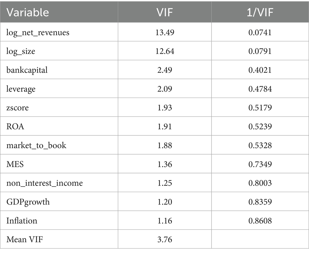 To ensure the reliability of our regression estimates, we assessed multicollinearity among the explanatory variables using the Variance Inflation Factor (VIF). Table 4 report the VIF values for the main independent variables included in the model. The results show that most variables have VIF values well below the conventional threshold of 10, suggesting that multicollinearity is not a major concern. While log_net_revenues and log_size have relatively higher VIF values (13.49 and 12.64, respectively), these reflect the natural correlation between firm size and revenue rather than problematic redundancy. The mean VIF is 3.76, which falls within the acceptable range. These findings support the robustness of our regression results and confirm that multicollinearity is unlikely to significantly bias the estimated coefficients.
