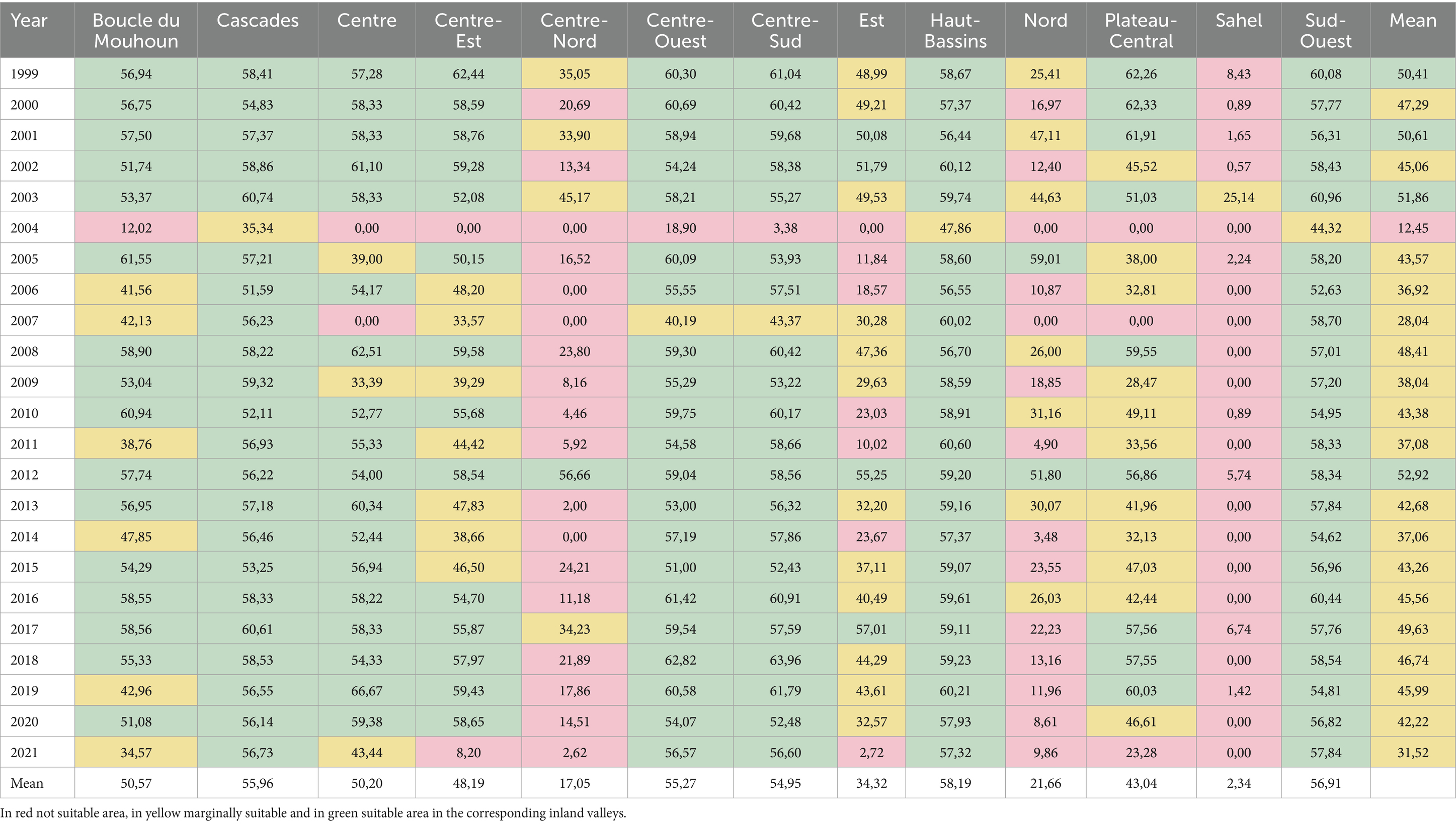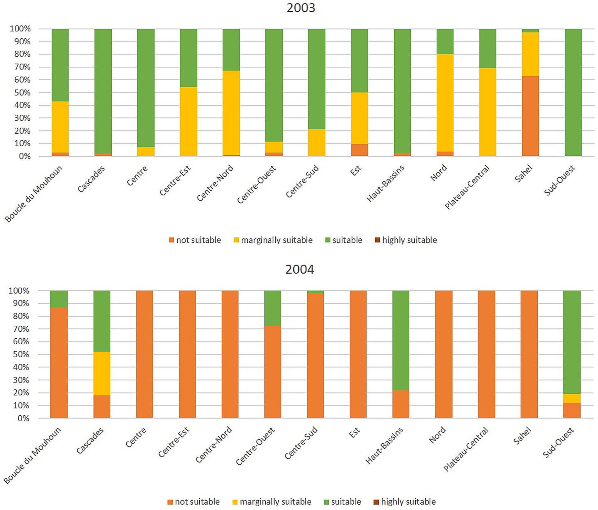 Table 3. Suitability values for each year and each region in Burkina Faso.