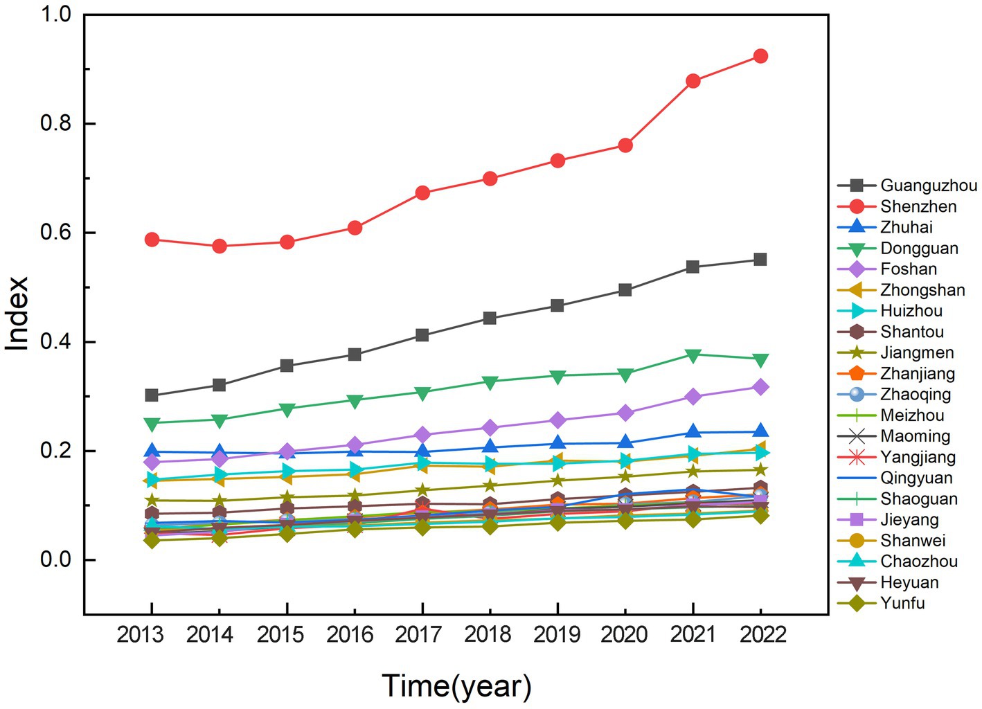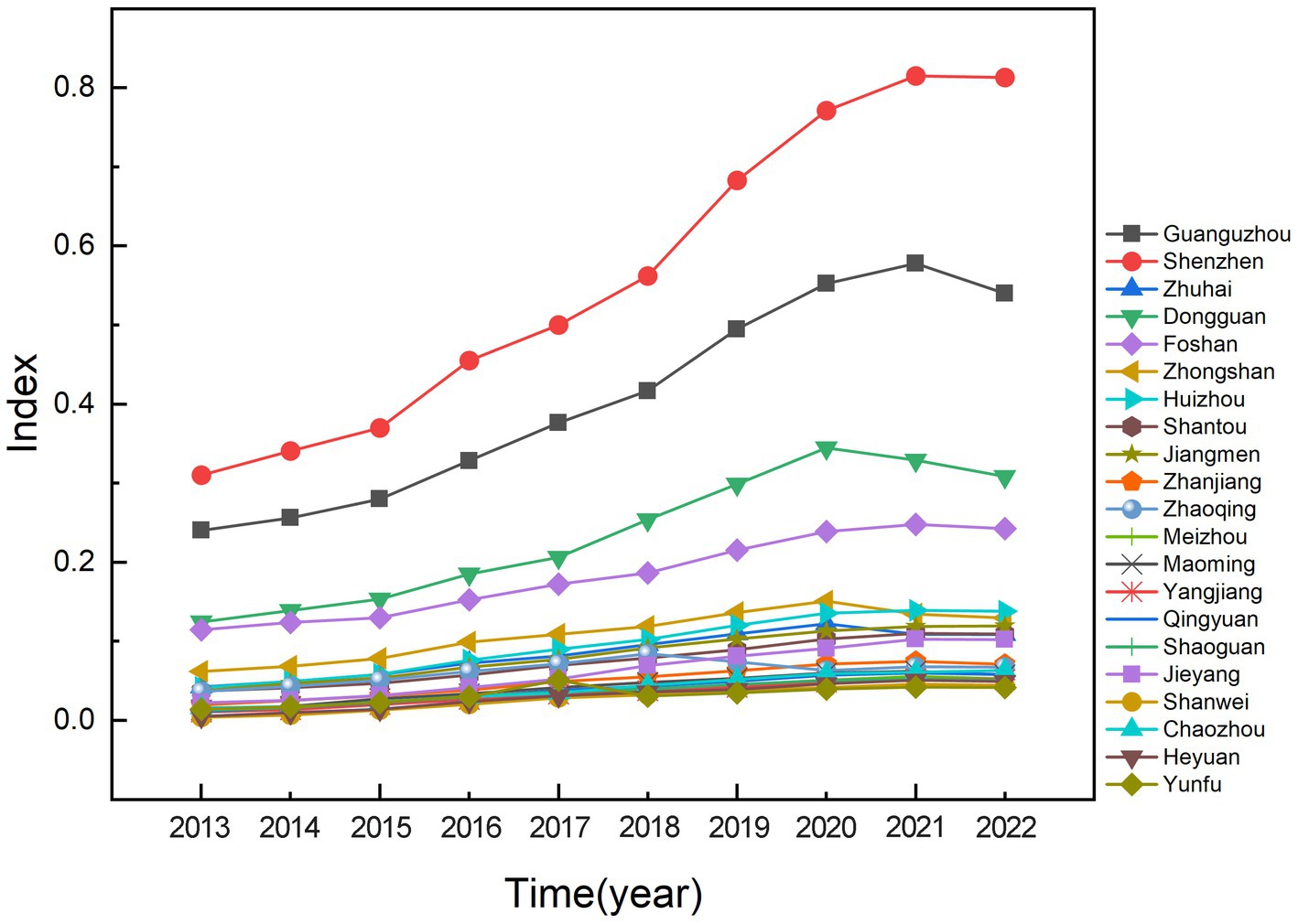 The digital economy, as a sustainable and innovative mechanism for economic change, has emerged as a crucial national strategic driver for China's attainment of high-quality development and low-carbon transition. Assessing the digital economy's contribution to both high-quality development and carbon reduction, as well as evaluating the extent of its effects, can offer accurate decision-making assistance for prioritizing development sectors and optimizing resource distribution. This research utilizes the Entropy Weight TOPSIS approach and spatial autocorrelation analysis to investigate the spatiotemporal characteristics of the digital economy and high-quality development in Guangdong Province. A coupling coordination model evaluates the extent of coordination between the two, while a Spatial Durbin Model (SDM) is utilized to estimate the coefficients regarding the digital economy's influence on both high-quality development and carbon emission reduction at the prefecture-level city size. The primary findings of the study are as follows: 1) Both the digital economy and high-quality development in Guangdong Province have progressively advanced, demonstrating notable spatial autocorrelation (Global Moran's I ranging from 0.21 to 0.36, p < 0.01). Nonetheless, development r is uneven, with the Pearl River Delta region significantly outpacing other areas. 2) The coupling coordination level between the digital economy and high-quality development exhibits fluctuating stability and significant regional disparities. The Pearl River Delta, particularly Shenzhen and Guangzhou, consistently achieves a coordination quality level exceeding 0.90, whereas Meizhou and Maoming frequently fall below 0.20, indicating severe discoordination. 3) The digital economy has a substantial beneficial impact and spatial spillover effect on both high-quality development and carbon reduction. The SDM findings reveal that the digital economy exerts a substantial direct influence on high-quality development (coefficient = 0.4837, p < 0.01), while demonstrating a slight negative impact on carbon emissions (coefficient = -0.2012, p < 0.05), thereby affirming that its impact on high-quality development is predominantly more pronounced than its influence on low-carbon development. This is a provisional file, not the final typeset article This report recommends focused ways to enhance the digital economy's fundamental role in fostering high-quality development while also realizing its promise for low-carbon synergy.