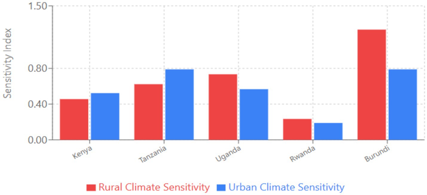 Our climate sensitivity analysis reveals striking differences in how rural and urban electricity systems respond to climate shocks across East African Community members. Rural electricity infrastructure demonstrates consistently higher vulnerability to climate variations, with sensitivity indices ranging from moderate levels in Kenya to extreme vulnerability in Burundi.
