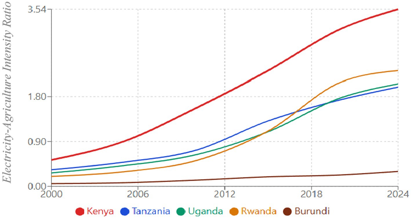 Beyond the physical infrastructure, our analysis highlights the critical role of governance. Kenya’s integrated performance across electrification, agricultural modernization, and climate resilience indicators reflects what Djido et al. (2021) describe as “nexus governance.” A coordinated policy approach recognizing the interdependence between energy, agriculture, and climate adaptation. In contrast, fragmented approaches in countries like Tanzania and Burundi have contributed to performance stagnation or decline.