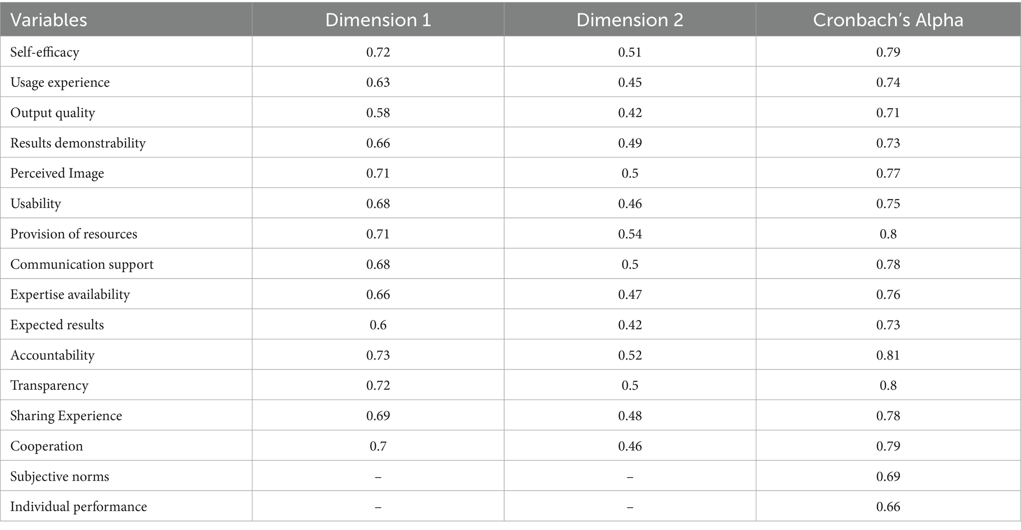 These findings underscore the importance of user-centric factors (e.g., perceived ease of use and usefulness) and governance mechanisms in overcoming barriers, particularly for low-sustainability practices like energy-efficient cooking stoves (Mdoe and Kilawi, 2024). The exclusion of subjective norms and individual performance suggests that collective and structural factors outweigh individual influences in resource-constrained settings. These insights inform targeted interventions, such as enhancing community training to boost self-efficacy and establishing transparent governance to support sustained CCA adoption.