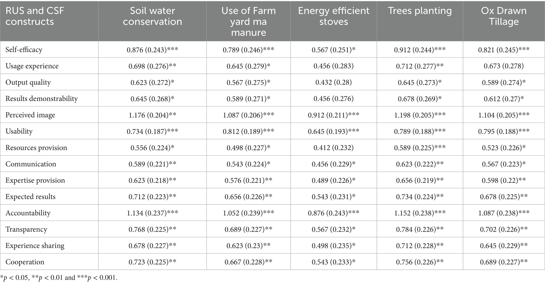 3.4 Influence of RUS and CSF on the sustainability of CCA practices