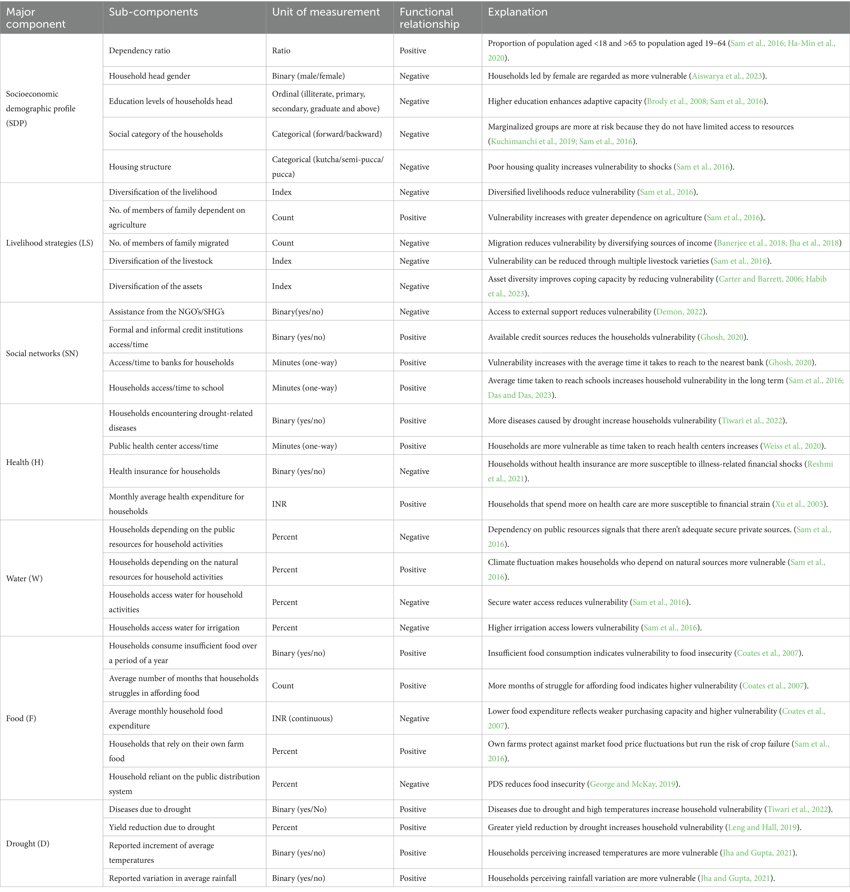Sam, A. S., Kumar, R., Kächele, H., and Müller, K. (2016). Quantifying household vulnerability triggered by drought: evidence from rural India. Clim. Dev. 9, 618–633. doi: 10.1080/17565529.2016.1193461