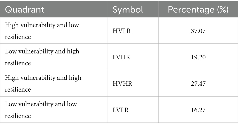 HLVI and HRI were graphically represented for each household categorizing them into patterns based on vulnerability and resilience scores. Four possible co-existence patterns were identified: high vulnerability & high resilience; high vulnerability & low resilience; low vulnerability & high resilience and low vulnerability & low resilience. This graphical representation aids in identifying and understanding the diversity of resilience and vulnerability profiles among households in the study area, offering valuable insights for your research work.