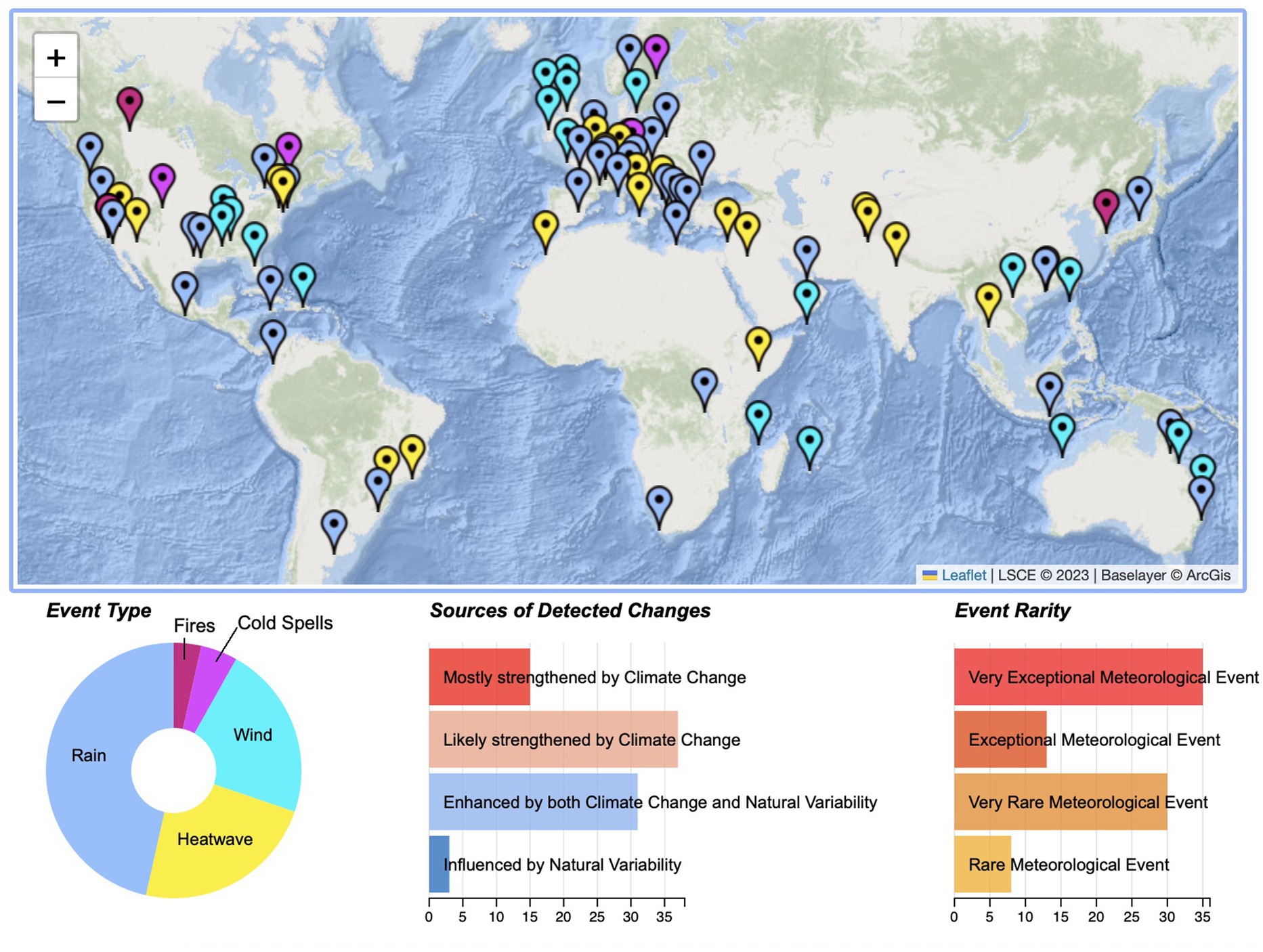 ClimaMeter has been used to attribute several recent extreme weather events, analyzing the influence of climate change on their characteristics (see Figure 2 for an ensemble of the events analyzed since July 2023).