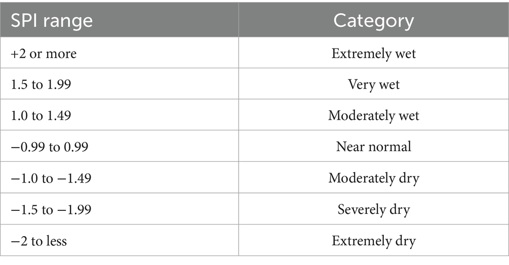 Table 1. Category of Standardized Precipitation Index (SPI) based on range values (Shah et al., 2015).