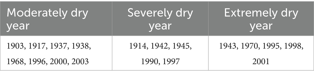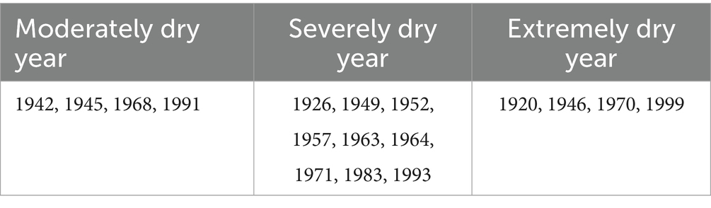 Table 3 provides a summary of the drought years based on 6-month SPI values, in which a total of 32 drought years were observed in the Ganganagar district: 15 years are moderately dry, 8 years are severely dry, and 9 years are extremely dry.