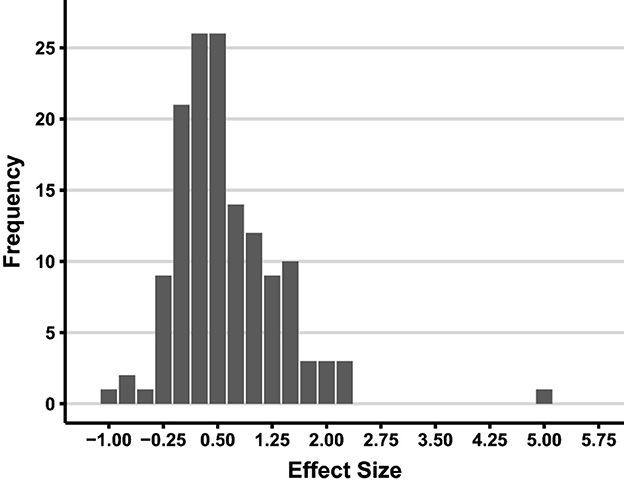 Figure 6. Distribution of effect sizes in the 138 conditions that explored vigilance decrements using signal detection theory between 1980 and 1992 (redrawn from Figure 2 in See et al., 1995).